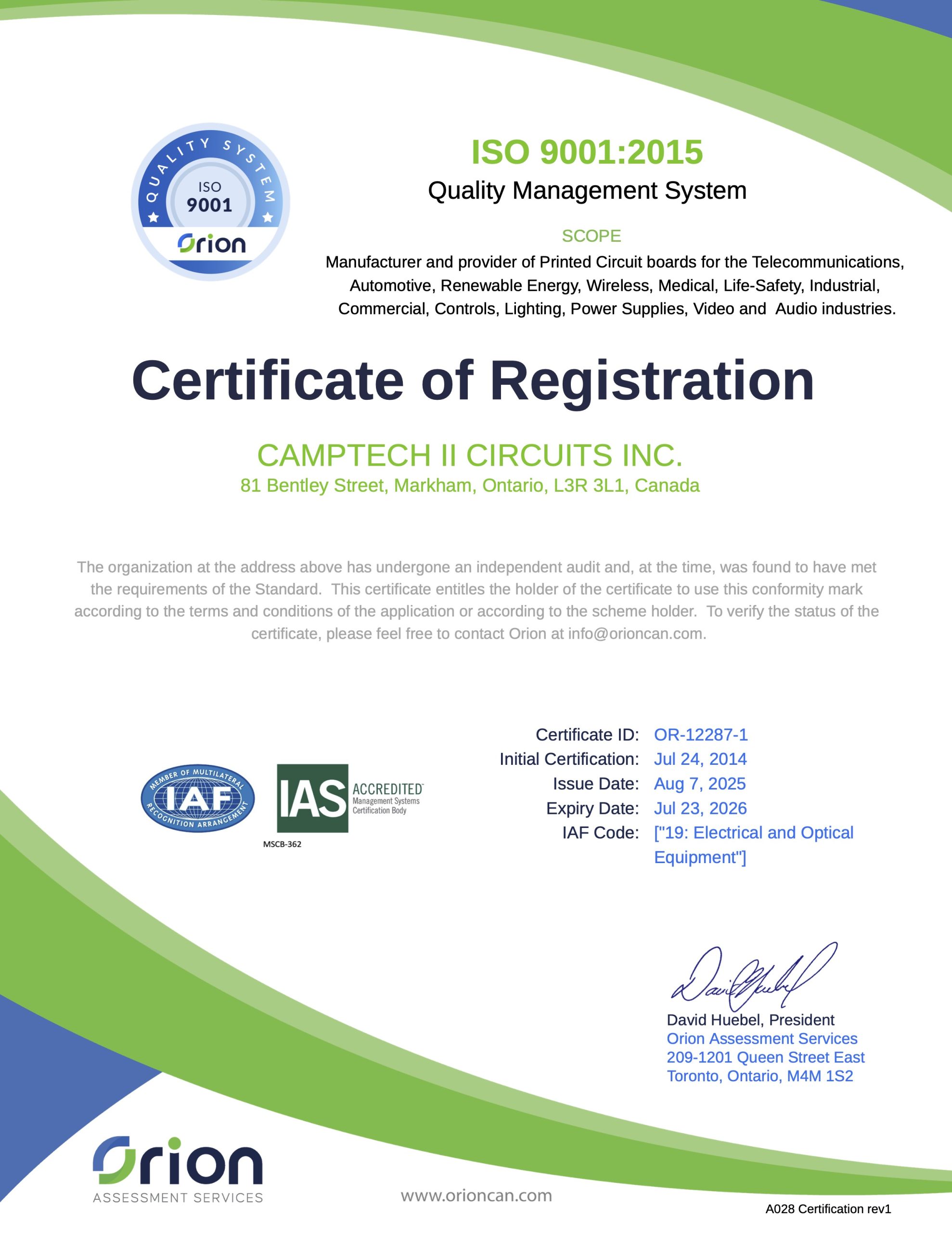 Camptech provides PCB assembly and manufacturing services across diverse industries throughout North America.